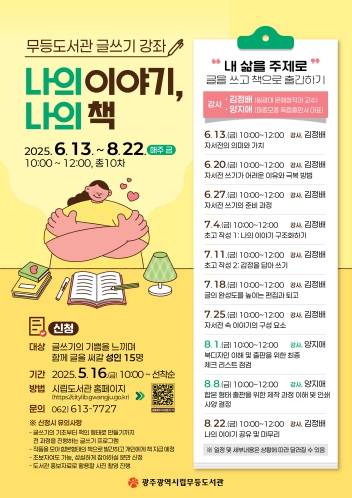 [시사토픽뉴스]광주광역시립무등도서관은 직접 글을 쓰고 책을 출간하는 성인 대상 글쓰기 강좌 ‘나의 이야기, 나의 책’을 운영한다.