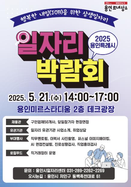 [시사토픽뉴스]용인특례시는 오는 21일 오후 2시부터 5시까지 처인구 삼가동 용인미르스타디움 2층 데크 광장에서 올해 첫 일자리박람회를 연다고 16일 밝혔다.