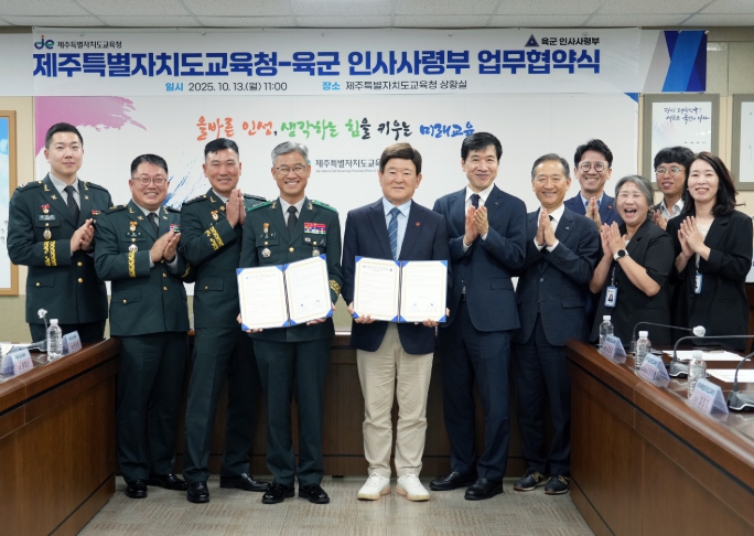 [시사토픽뉴스]제주특별자치도교육청은 13일 도교육청 상황실에서 육군 인사사령부와 고등학생들의 진로 탐색 기회 확대를 위한 업무협약을 체결했다.