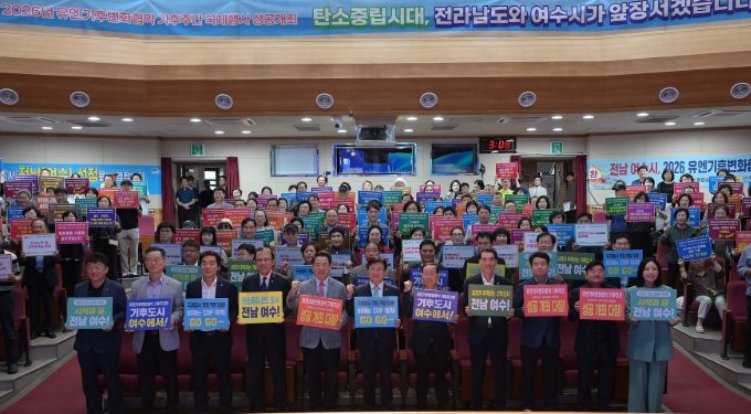 [시사토픽뉴스]여수시는 지난 14일 진남문예회관에서 ‘2026년 유엔기후변화협약(UNFCCC) 기후주간(Climate Week)’ 국내 개최 후보지 선정을 기념하는 행사를 열고 유치를 위한 의지를 다졌다.