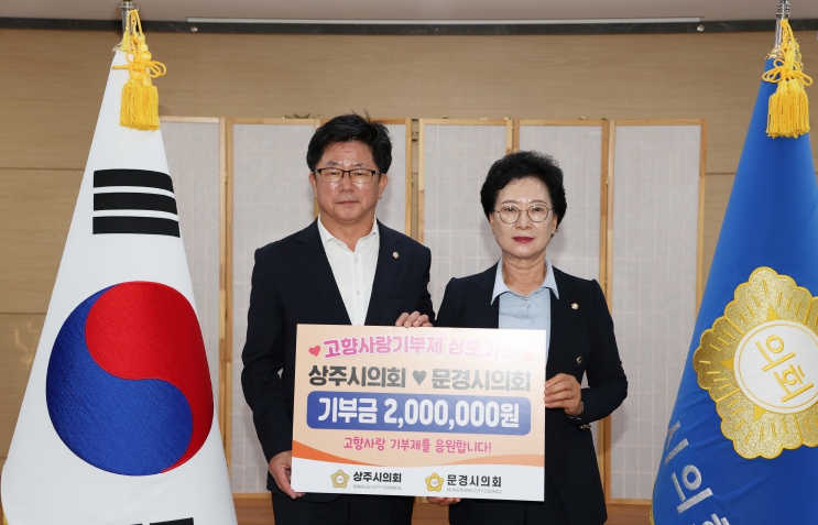 [시사토픽뉴스]상주시의회는 15일, 고향사랑기부제 활성화를 유도하고 지역 상생발전을 도모하기 위해 문경시의회(의장 이정걸)와 고향사랑기부제 상호기부를 진행했다.
