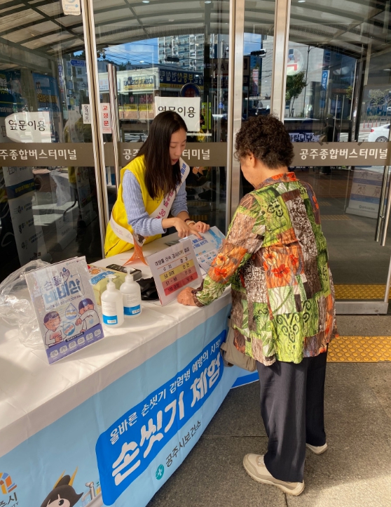 [시사토픽뉴스]공주시는 지난 15일 공주종합버스터미널 일원에서 시민과 이용객을 대상으로 개인위생 수준 향상을 위한 감염병 예방 캠페인을 실시했다고 밝혔다.
