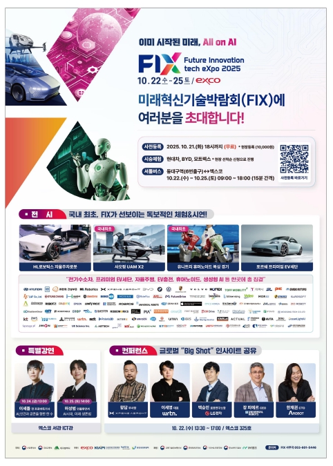 [시사토픽뉴스] ‘이미 시작된 미래, All on AI’를 주제로 ‘2025 미래혁신기술박람회’가 10월 22일부터 25일까지 4일간 대구 엑스코에서 열린다.