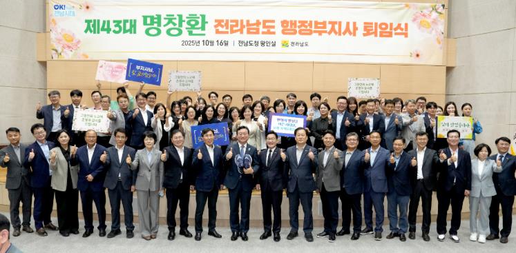 [시사토픽뉴스]전라남도는 16일 도청 왕인실에서 제43대 명창환 행정부지사 퇴임식을 개최했다.