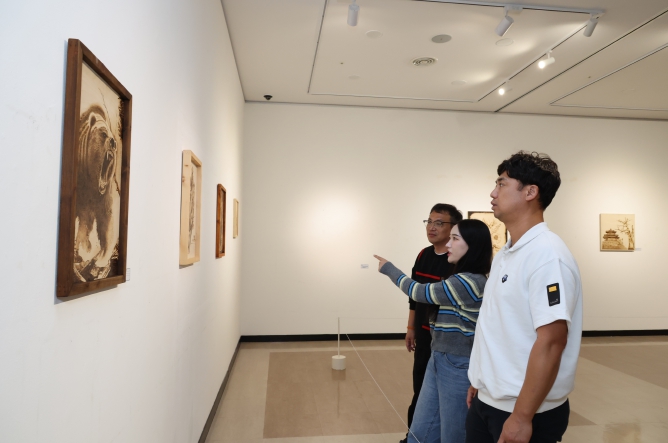 [시사토픽뉴스]무주군이 다양한 전시회를 열어 가을 방문객들을 손짓하고 있다. 무주최북미술관에서는 오는 10월 30일까지 “빛과 나무의 대화-무주in 인두화 展”이 개최된다.