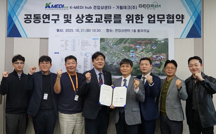 [시사토픽뉴스]케이메디허브(대구경북첨단의료산업진흥재단) 전임상센터가 21일 거림테크(주)와 필름 기반 의료기기 공동개발을 위한 업무협약을 체결했다.