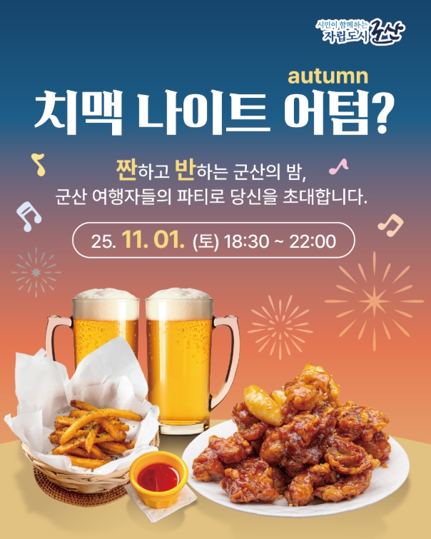 맥주 한잔 어텀(Autumn)? 군산시, 추운 가을밤을 뜨겁게 달굴, 치맥나이트 개최