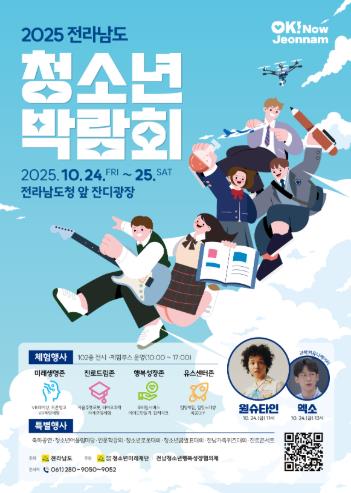 [시사토픽뉴스]전라남도는 청소년이 행복한 전남 실현을 위해 도가 주최하고 (재)전남도청소년미래재단이 주관하는 ‘2025 전라남도 청소년박람회’를 24일부터 2일간 전남도청 앞 도민광장에서 개최한다.