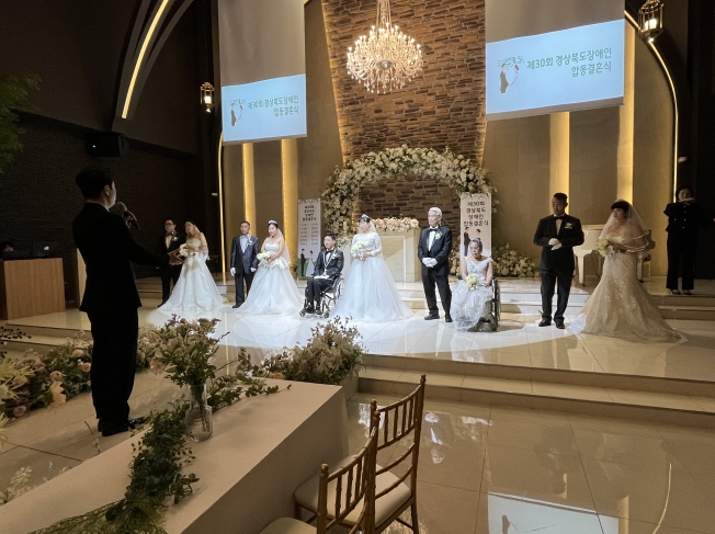 [시사토픽뉴스]경상북도는 한국장애인재활협회 경북협회 주관으로 22일 경북 안동 두리원웨딩홀에서 신랑·신부 5쌍과 가족, 친지, 내빈 등 120여 명이 참석한 가운데 ‘제30회 경상북도 장애인 합동결혼식’을 성황리에 개최했다.