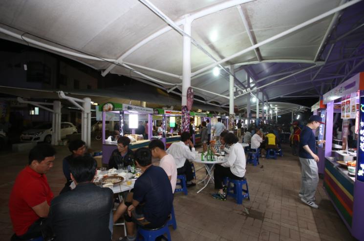 야시장에는 간식 및 먹거리 부스가 운영되며, 수공예품 체험 행사도 열린다.