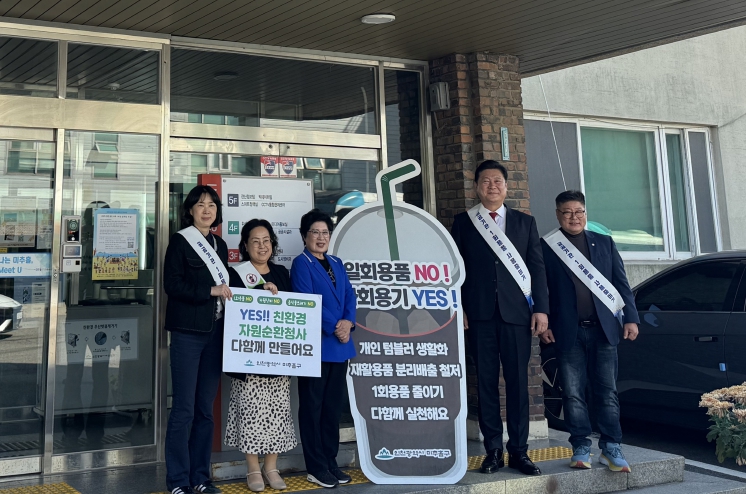 이번 캠페인은 구청 내 일회용품 사용을 줄이고 친환경 실천 문화를 확산하기 위한 것으로, 이영훈 구청장이 직접 참여해 직원들의 자발적인 참여를 독려하며 청사 내 일회용 컵 반입과 사용을 금지하고, 다회용 컵 및 개인 텀블러 사용을 권장했다.