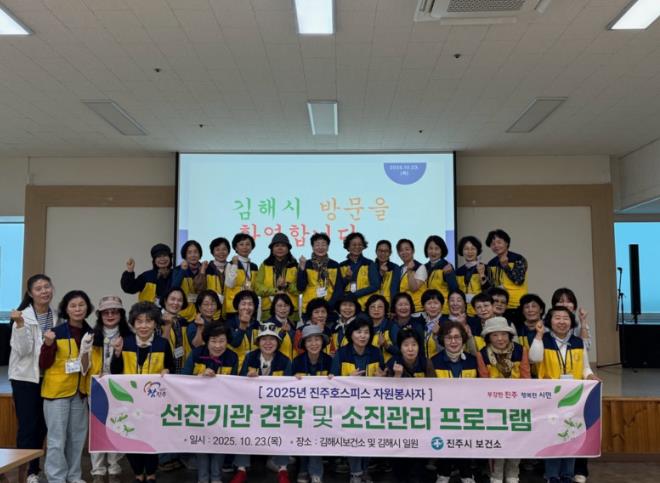 [시사토픽뉴스]진주시 보건소는 호스피스 자원봉사자들의 돌봄 서비스 역량 강화와 사기진작을 위해 23일 김해시보건소 견학 및 소진관리 프로그램을 실시했다고 밝혔다.