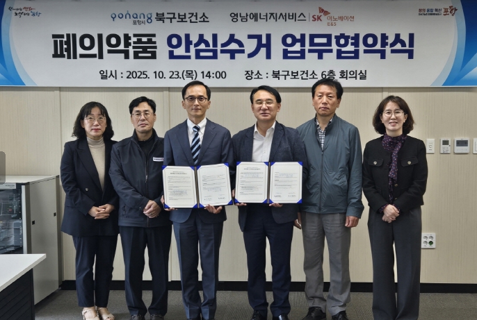 [시사토픽뉴스] 포항시 북구보건소는 23일 영남에너지서비스와 함께 ‘폐의약품 안심수거 협력’을 위한 업무협약을 체결했다.