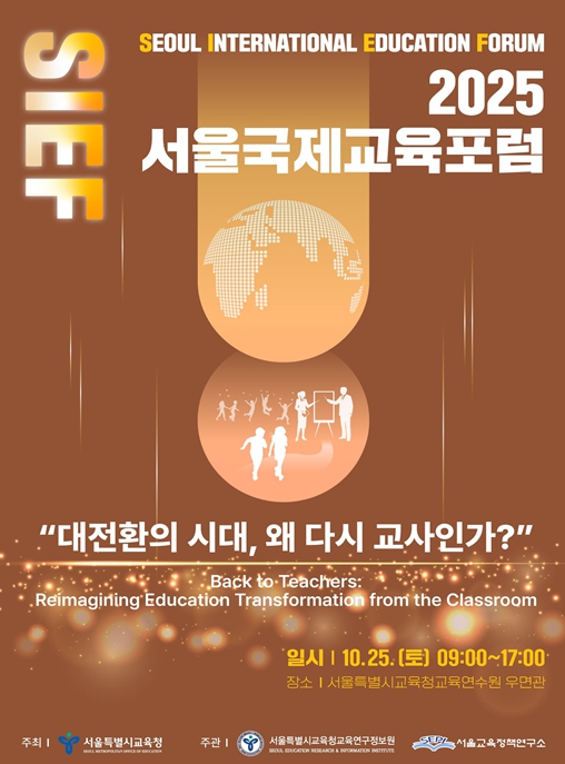 [시사토픽뉴스]서울특별시교육청 산하 서울특별시교육청교육연구정보원 교육정책연구소는 오는 10월 25일 서울특별시교육청교육연수원에서 “대전환의 시대, 왜 다시 교사인가(Back to Teachers: Reimagining Education Transformation from the Classroom)”를 주제로 2025 서울국제교육포럼(Seoul International Education Forum, 이하 SIEF 2025)을 개최한다.
