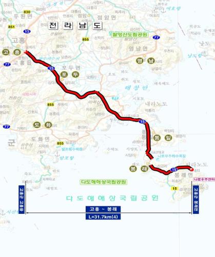 고흥군, 고흥~봉래 국도15호선 확장사업 추진 빨라진다 - 고흥~봉래 국도15호선 확장사업 위치도