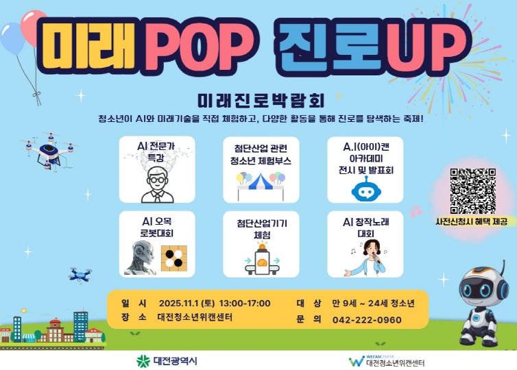 [시사토픽뉴스]대전시는 AI 및 미래 기술 관련 체험 기회를 제공하고 진로 탐색을 돕기 위한‘2025년 미래POP 진로UP 미래진로박람회’를 11월 1일 개최한다.
