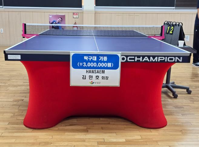 [시사토픽뉴스]순창군은 순창군 금과면 출신인 HANSAEM 김만호 회장이 31일 순창시니어클럽에 300만 원 상당의 탁구대 2대를 기증했다고 밝혔다.