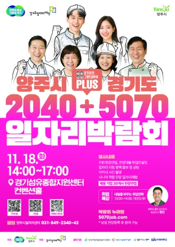 양주시·경기도, ‘2040+5070 일자리박람회’ 개최…세대별 맞춤 취업 지원 나선다