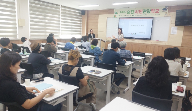 순천 시민관광학교에 참여한 시민들이 치유분야 강좌를 듣고 있다.