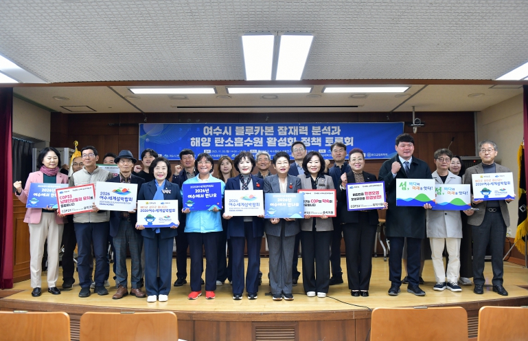 [시사토픽뉴스]여수시의회 의원연구단체 ‘기후변화대응 탄소중립 연구회’(대표의원 정신출)가 11월 3일 전남대학교 산학연구관에서 ‘여수시 블루카본 잠재력 분석과 해양 탄소흡수원 활성화 정책 토론회’를 개최했다고 밝혔다.