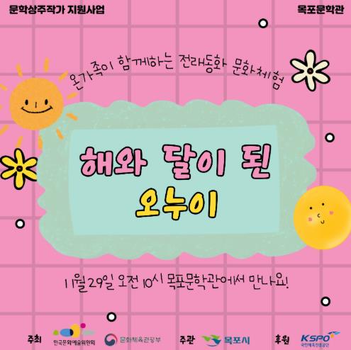 [시사토픽뉴스]목포시는 오는 11월 29일 오전 10시 목포문학관에서 ‘온가족이 함께하는 전래동화 문화체험’을 운영한다.