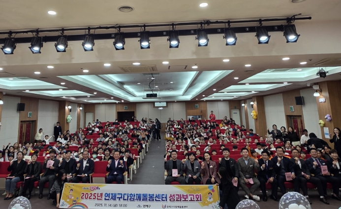 [시사토픽뉴스]부산시 연제구는 11월 14일 구청 구민홀에서 아동, 학부모, 시설종사자 및 법인관계자 등 250여 명이 참여한 가운데 ‘제1회 연제구다함께돌봄센터 성과보고회’를 개최했다.