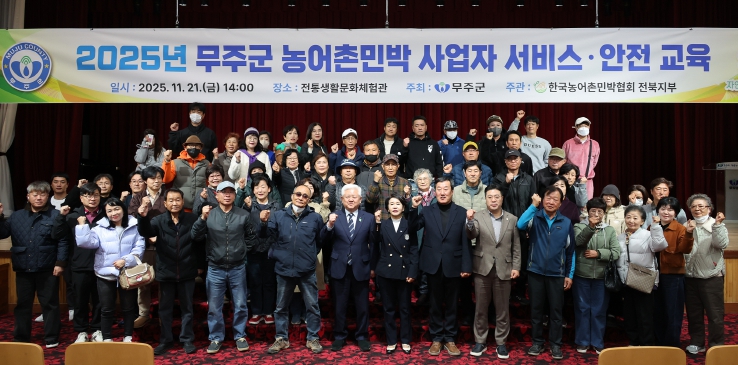 [시사토픽뉴스]무주군은 지난 21일 무주읍 소재 전통생활문화체험관에서 '2025년 농어촌 민박 사업자 서비스·안전 집합교육'을 실시했다고 밝혔다.
