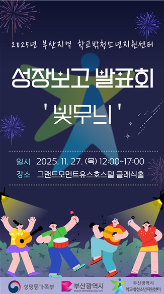 [시사토픽뉴스] 부산시는 27일 낮 12시 남구 그랜드모먼트 유스호스텔에서 '2025년 부산지역 꿈드림 성장보고 발표회 '빛무늬''가 열린다고 밝혔다.