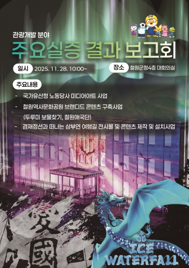 [시사토픽뉴스]철원군은 지역 관광 경쟁력 강화를 위해 추진한 다양한 실증 사업의 성과를 공유하는 자리를 마련한다. 2025.11.28일 오전 10시 철원군청 4층 대회의실에서 관광개발 분야 주요실증 결과보고회가 개최된다.