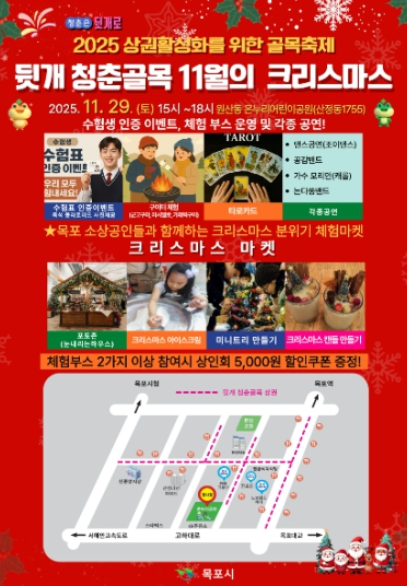 [시사토픽뉴스]목포시는 오는 11월 29일(토) 온누리어린이공원에서 ‘뒷개 청춘골목 11월의 크리스마스’를 개최한다.