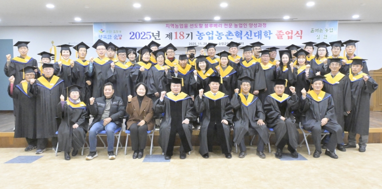 [시사토픽뉴스]순창군은 28일 농업기술센터 다목적 강당에서 제18기 농업농촌혁신대학 졸업식을 개최하고, 9개월간의 교육과정을 성실히 이수한 교육생들에게 졸업장을 수여했다.