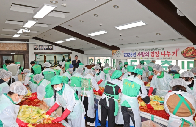 [시사토픽뉴스]인천 미추홀구새마을회는 지난 5일 학익동 새마을회관에서 새마을지도자, 미추홀청년연대 등 80여 명이 참석한 가운데 ‘사랑의 김장 나눔’ 행사를 개최했다.