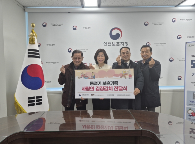 [시사토픽뉴스] 인천보훈지청은 12월 9일 겨레홀에서 사회문화 정책연구원 등 관내 3개 후원기관과 함께 동절기 보훈가족 사랑의 김장김치(1015kg, 145가구) 전달식을 개최했다.