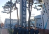 나성현 무등팀장 등 직원들이 무등야구장 앞에서 파이팅을 외치고 있다.