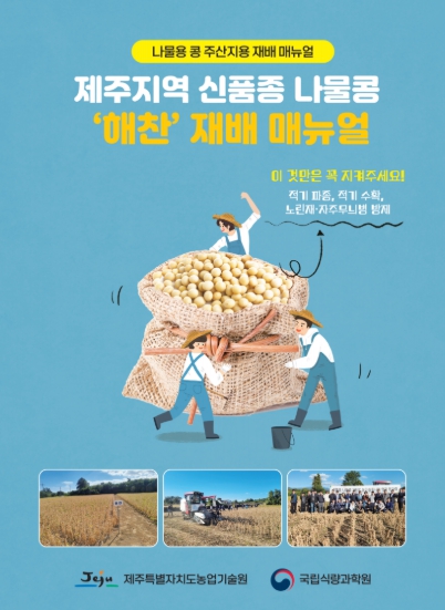 [시사토픽뉴스] 제주특별자치도 농업기술원(원장 고상환)은 신품종 나물콩 ‘해찬’의 표준 재배 매뉴얼을 제작해 배포했다. ‘해찬’은 성숙기가 빠르고 기계수확에 적합하며 콩나물 수율이 높은 품종이다.