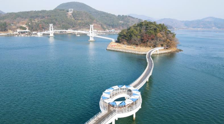 [시사토픽뉴스]광양시는 지난 15일, 배알도 수변공원에 위치한 해맞이다리 중앙부 원형 구간에 시민과 관광객을 위한 쉼터 조성을 완료했다고 밝혔다.