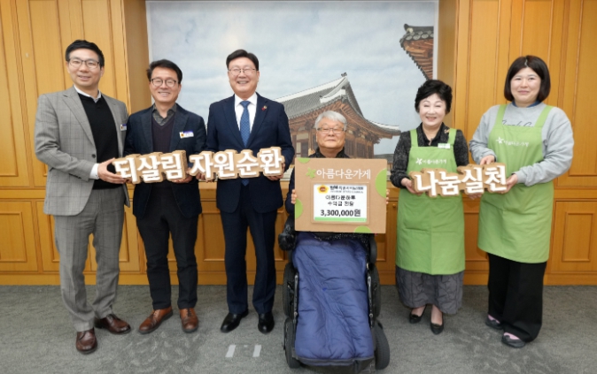 [시사토픽뉴스]전북특별자치도의회는 18일 의장실에서 하나예술창작센터의 장애인 예술 창작활동 지원과 노후 시설 보완 등에 활용해 달라며 기부물품 바자회 수익금 330만 원을 전달했다.