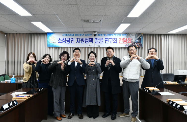 [시사토픽뉴스]여수시의회 의원연구단체인 ‘소상공인 지원정책 발굴 연구회’(대표의원 민덕희, 소속 의원 이찬기·최정필·김철민·김채경)는 19일 시의회 운영위원회 회의실에서 최종 간담회를 열고, 지난 1년간 추진해 온 소상공인 지원정책 발굴 활동과 그 정책적 성과를 종합적으로 점검했다.