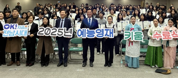 [시사토픽뉴스]전라남도는 도청 왕인실에서 2025년 예능영재 키움 수료식을 지난 22일 열어 1년간의 교육과정을 성실히 이수한 예능영재 학생들을 격려했다.