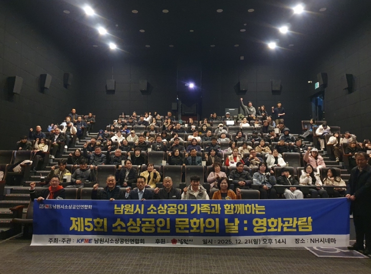 [시사토픽뉴스]남원시소상공인연합회(회장 강상남)는 지난 21일 NH시네마에서 소상공인과 가족들을 초청해 영화 관람 행사를 열고 ‘소상공인 문화의 날’을 기념했다.