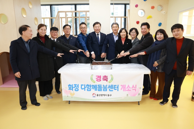 [시사토픽뉴스]울산 동구는 12월 24일 오전 10시 30분 화진4가길 20, 3층에서 김종훈 동구청장과 지역 주민 100여 명이 참석한 가운데 ‘화정다함께돌봄센터 개소식’을 개최했다.