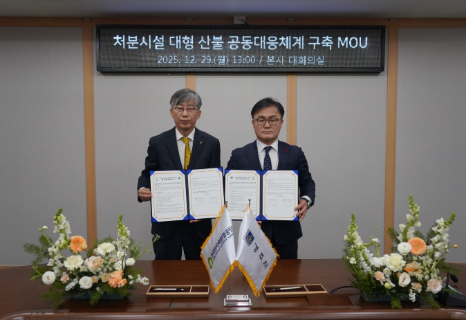 [시사토픽뉴스]경주시는 지난 29일 한국원자력환경공단과 산불 발생 시 신속하고 체계적인 대응을 위한 ‘산불 공동대응체계 구축 업무협약(MOU)’을 체결했다.