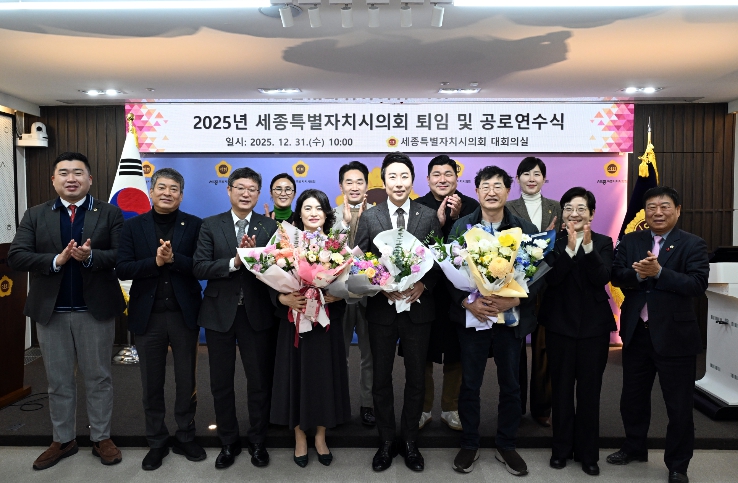 [시사토픽뉴스] 세종특별자치시의회는 31일 시의회 대회의실에서 퇴임 및 공로연수를 맞는 공직자들의 노고에 감사의 마음을 전하는 2025년 세종시의회 퇴임 및 공로연수식을 개최했다.