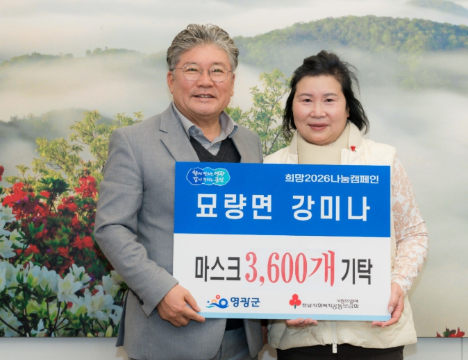 [시사토픽뉴스] 영광군은 2025년 12월 30일 묘량면에 거주하는 강미나 씨가 어려운 이웃들에게 전달해달라며 마스크 3,600개를 기탁해 희망2026나눔캠페인에 동참했다고 밝혔다.