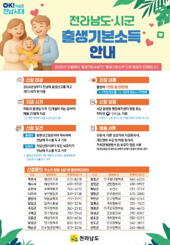 전남서 태어난 2025년생 ‘출생기본소득’ 신청하세요