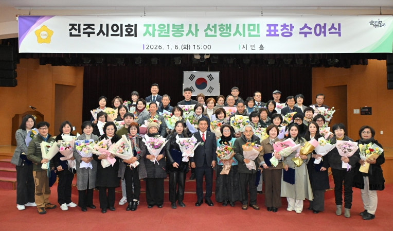 백승흥 의장은 “한 해 동안 묵묵히 이웃을 살피고 공동체를 위해 헌신해 주신 시민 여러분의 발걸음이 진주의 오늘을 지탱하는 힘”이라며, “여러분의 선행이 또 다른 나눔으로 이어져 더욱 단단한 지역공동체를 만들어 가길 바란다”고 말했다.