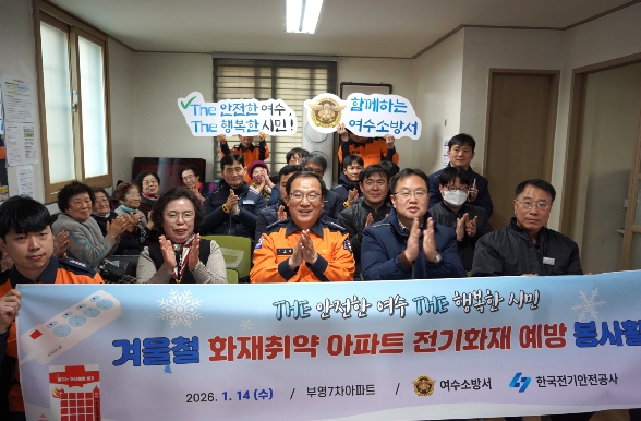 [시사토픽뉴스] 여수소방서는 1월 14일, 여수시 여서동에 위치한 부영7차아파트에서 한국전기안전공사 여수지사와 함께 자동소화멀티탭 기증식 및 화재 예방 합동 안전 활동을 실시했다.