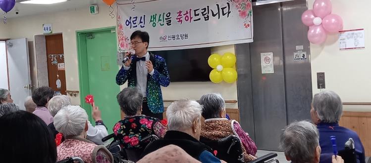 실제 이날 신광요양원에서 어르신 정서 지원을 위해 '찾아가서 함께하는 효사랑 잔치'를 열고, 율동과 웃음치료, 건강 박수 배우기 등을 진행했다.