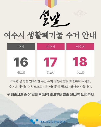 여수시도시관리공단, 2026년 설 명절 대비 특별 환경정비 추진 및 휴무 안내