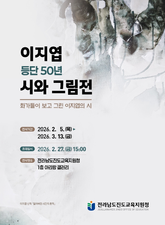 [시사토픽뉴스] 전라남도진도교육지원청은 2월 5일부터 3월 13일까지 아리랑 갤러리에서 이지엽 시인 등단 50년을 기념하는 『시와 그림展』을 개최한다.